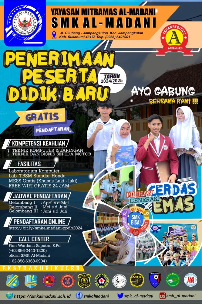 PENDAFTARAN ONLINE :https://bit.ly/PPDBAL-MADANI2024_2025 PENDAFTARAN OFFLINE :0856-2443-1220 (Fian Wardana Saputra, S.Pd)0857-9321-9981 (Haris Abdul Aziz)